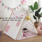 Mẫu lều chữ A cho bé chơi trong nhà GA8180 là một trong những mẫu lều trẻ em mà chúng tôi đang cung cấp. Sản phẩm dành cho cả bé trai, bé gái đều được. Lắp đặt đơn giản dễ dàng, vệ sinh bằng máy hút bụi, máy giặt, giặt tay đều được. Sản phẩm có giá lều, thảm và phụ kiện rời khác nhau.
